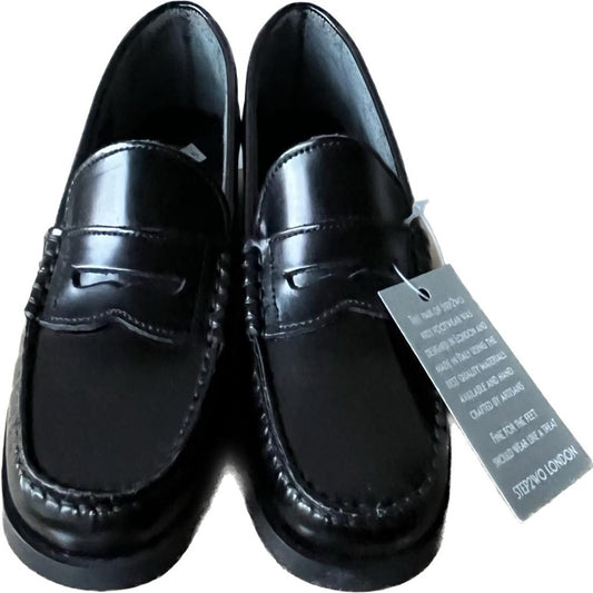 STEP2WO BUDDY Black Leather Loafers - UK 1 & 2 - NEW in Original Box