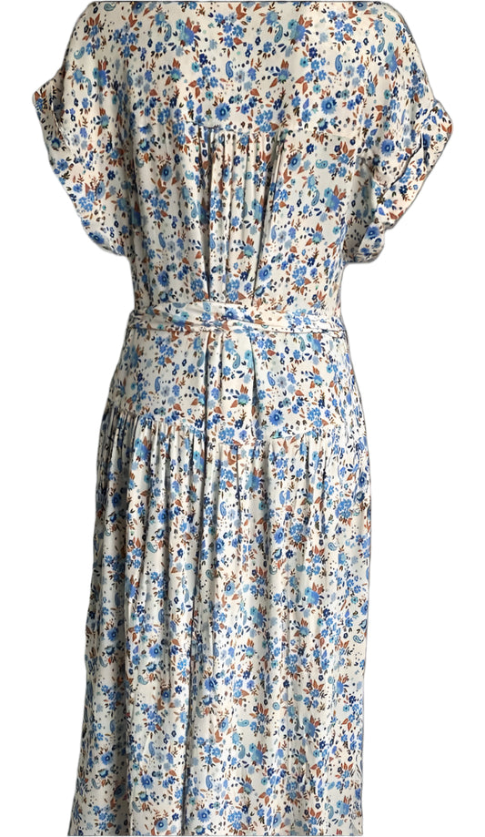 EAST Cream Dress with Blue Flower Pattern - UK S - Brand NEW with Tags
