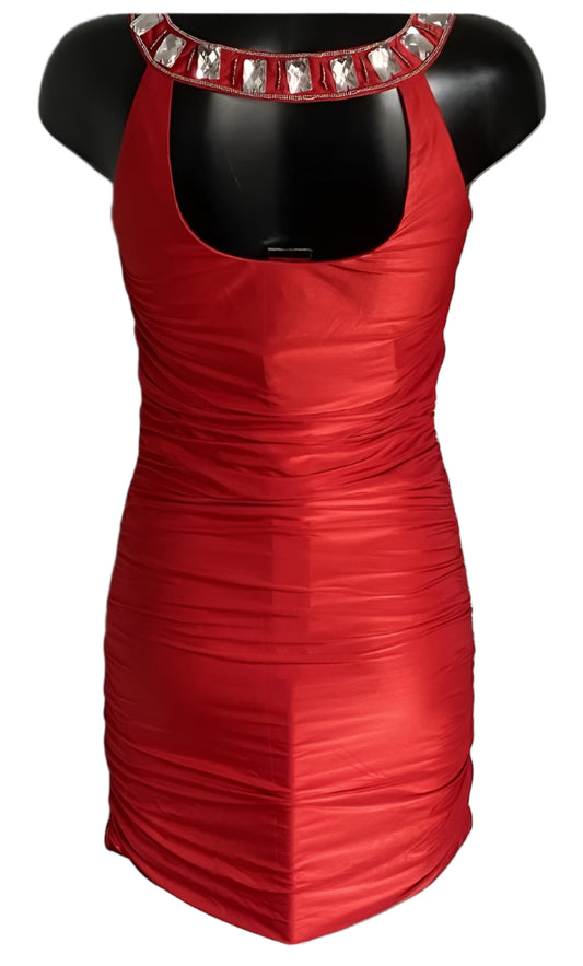 AX PARIS Red Ruched Jewelled Dress - Size UK12 - Brand NEW with Labels