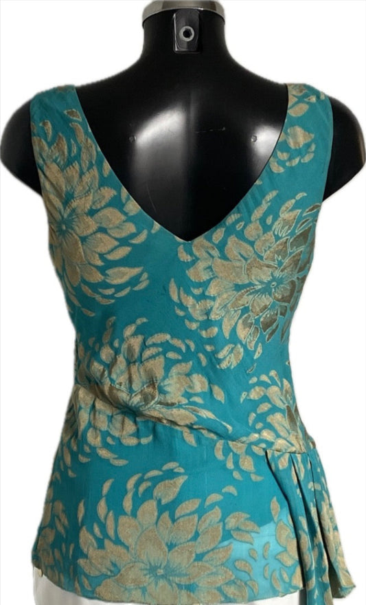 TED BAKER Green/Gold Chiffon Top - UK12 - Pre-loved in Great Condition
