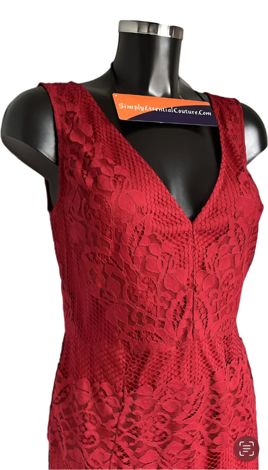 NEXT Red Overlay Lace Dress - Size UK10 - Brand New with Labels