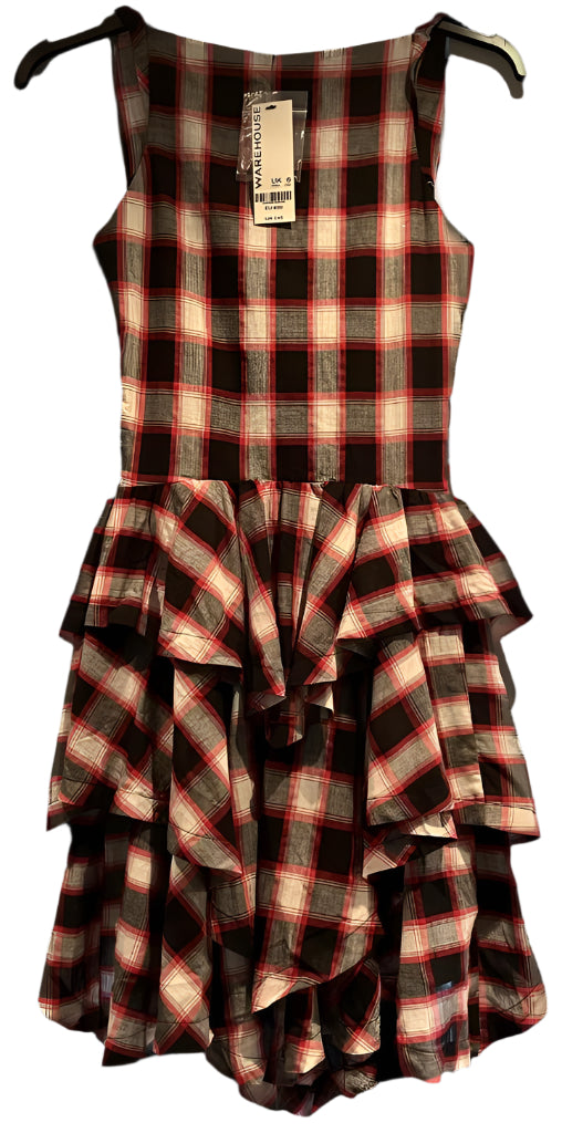 WAREHOUSE Black & Red Checked Dress - Size UK6 - Brand NEW with Tags