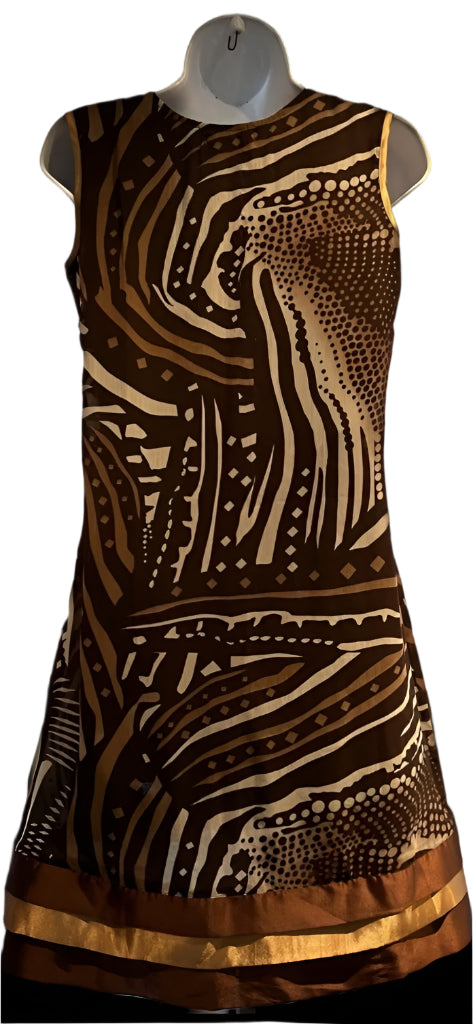 WHISTLES Brown & Cream Silk Dress - UK8 - Pre-loved Fabulous Condition