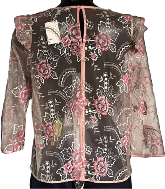 NEXT Pink Translucent Tapestry Lace Top - UK10 - Brand New With Tags