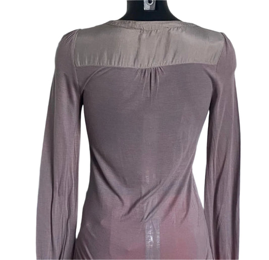 REISS Brown Top with Silk Panel - Size S - Preloved in Great Condition