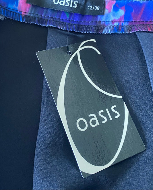 OASIS 80's Style Blue Flower Smudge Skirt - UK12 - Brand NEW with Tags