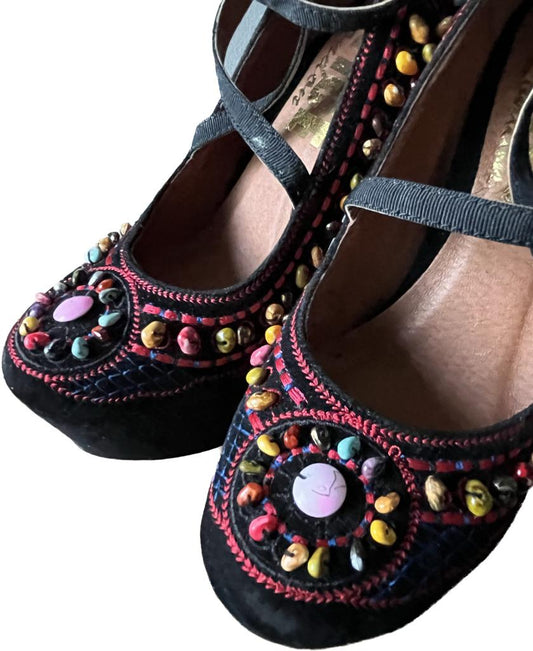OFFICE Black Suede Embellished Shoes - UK4 - Brand NEW in Original Box