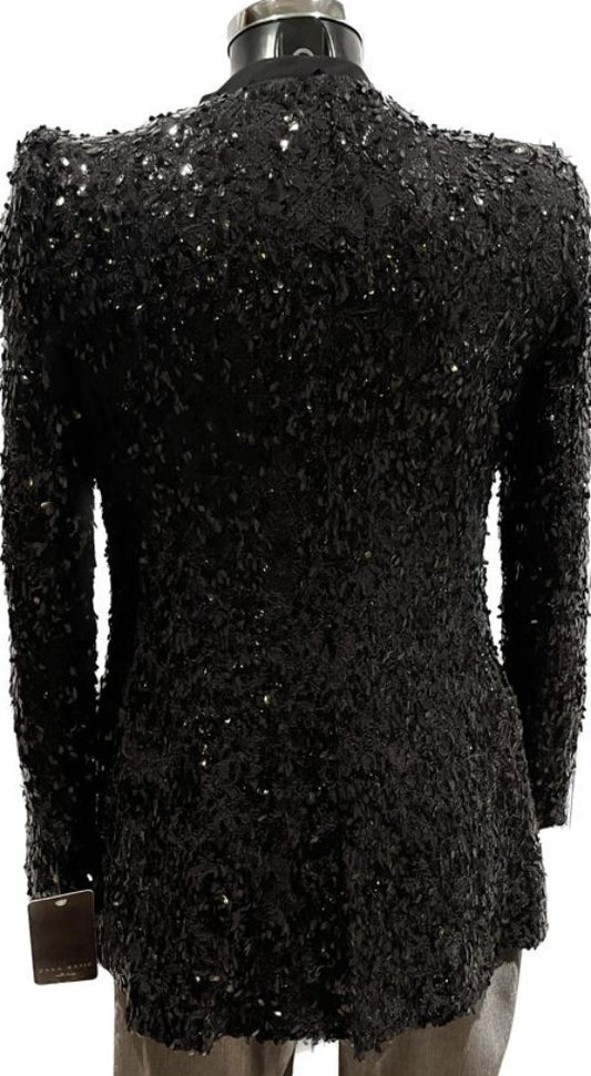 ZARA Black Cotton Sequinned Jacket - Size UK M - Brand NEW with Tags