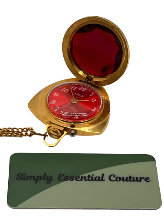 ZARJA Vintage Red Medallion Watch Pendant Necklace - Pre-loved