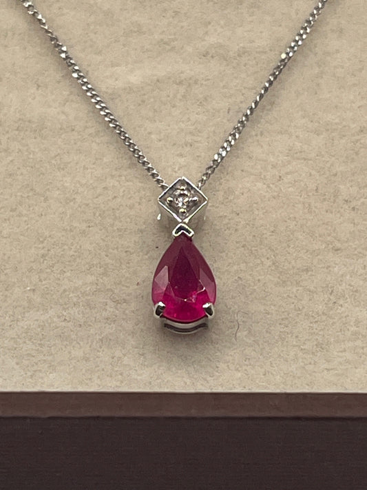 LORDS JEWELS - 9ct White Gold & Red Stone Necklace - Inc. IGI Report