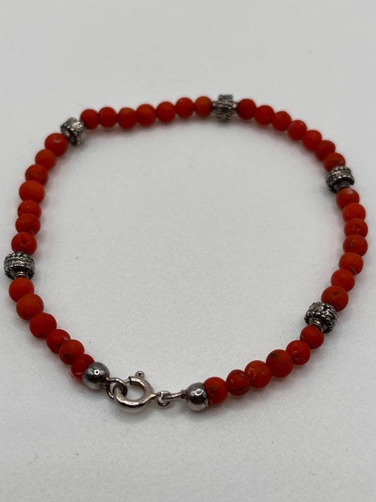 ANTIQUE Raw Red Coral Beads and Silver Bracelet - Possibly Victorian