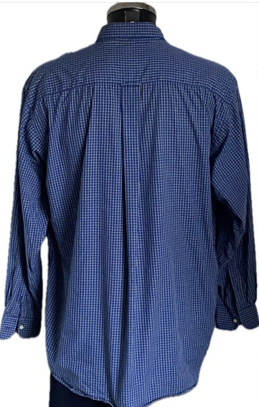 THOMAS BURBERRY Navy Check Shirt - UK L - Preloved in Superb Condition