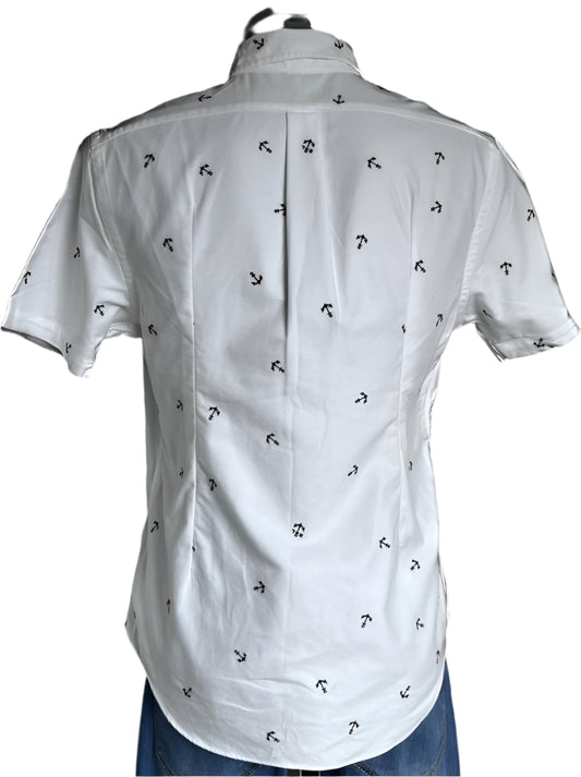 RALPH LAUREN White Shirt with Anchors - UK M - In Excellent Condition