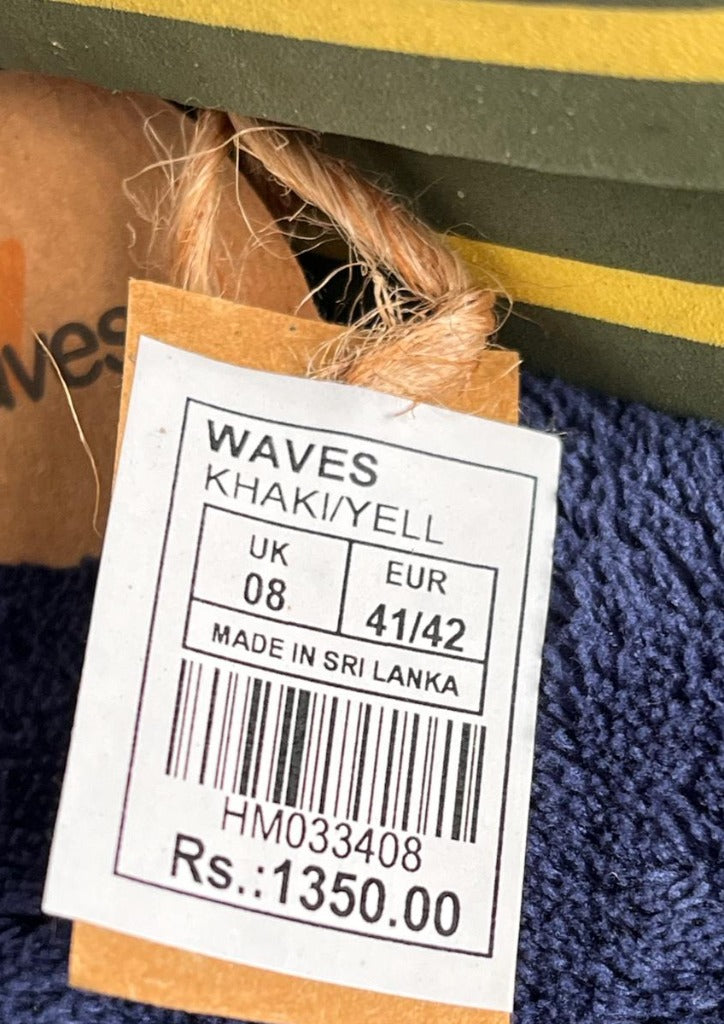 WAVES Khaki Flip Flops - Size UK 8 - Brand New With Tags